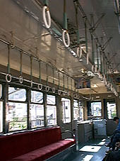 まずは全景から。両側ともロングシートが続き、吊革がずらりとならんでいます。