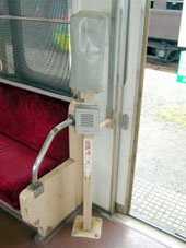 ワンマン運転を行っているため整理券発行器が備え付けられております。