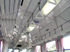 両側は荷物棚が台形の形をした天井での構成となっています。