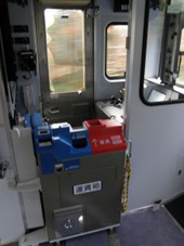 片側運転台付近、出入口すぐ横にはドリンク回収箱が設置されています。