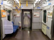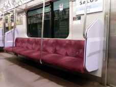 東急5000系と基本仕様は同じですが、腰掛仕切の紫色が印象的。