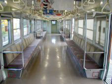ロングシート化された客室内。両側が全てロングシートとなっています。
