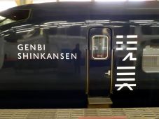 車内を映し出す鏡面ステンレスの中で外には今の新潟の風景が。