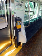 優先席の様子です。優先席区域には全面的に赤の縞模様で区域を明示。
