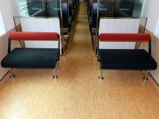 続けて2人掛腰掛を見ます。室内全体のオフホワイトに合う腰掛表地ですね。