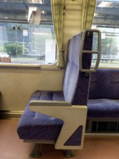 排気用ダクトがあるお陰で非常に変わった腰掛配置変則2+3。