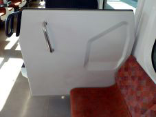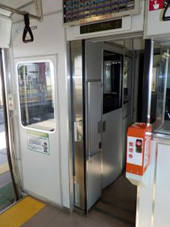 扉は緑の蛍光色で車内でもひときわ目立つ存在です。