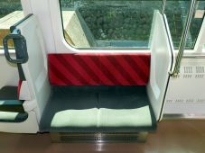 さらにロングシート着座の人が立ち上がり易く握り棒もあります。