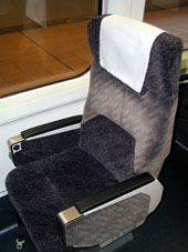 そして腰掛です。普通席腰掛との違いはインアームテブルがあること。
