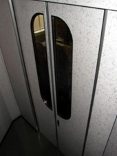 車椅子対応の大型の出入扉。