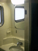 洗面台です。車両的には古いため化粧板で固めた旧タイプのものです。