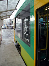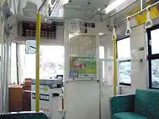 高床部分にあるロングシートです。まあ路面電車ということで座面奥行きや座り心地はほどほどですが、