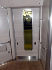 反対側3号車側へと続く妻部はご覧の通り車椅子も通れるよう、