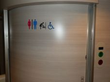 車椅子対応の多目的トイレの中はご覧の通り。ベビーチェアもありますね。